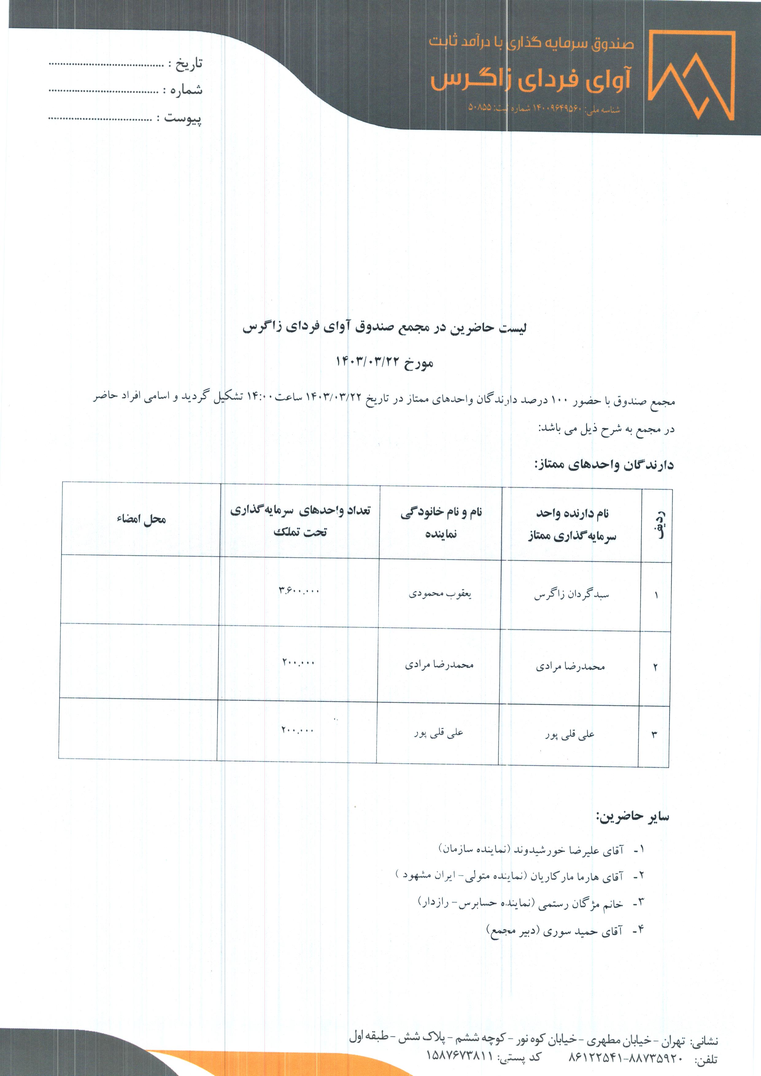 لیست حاضرین مجمع صندوق آوای فردای زاگرس مورخ 1402/08/14