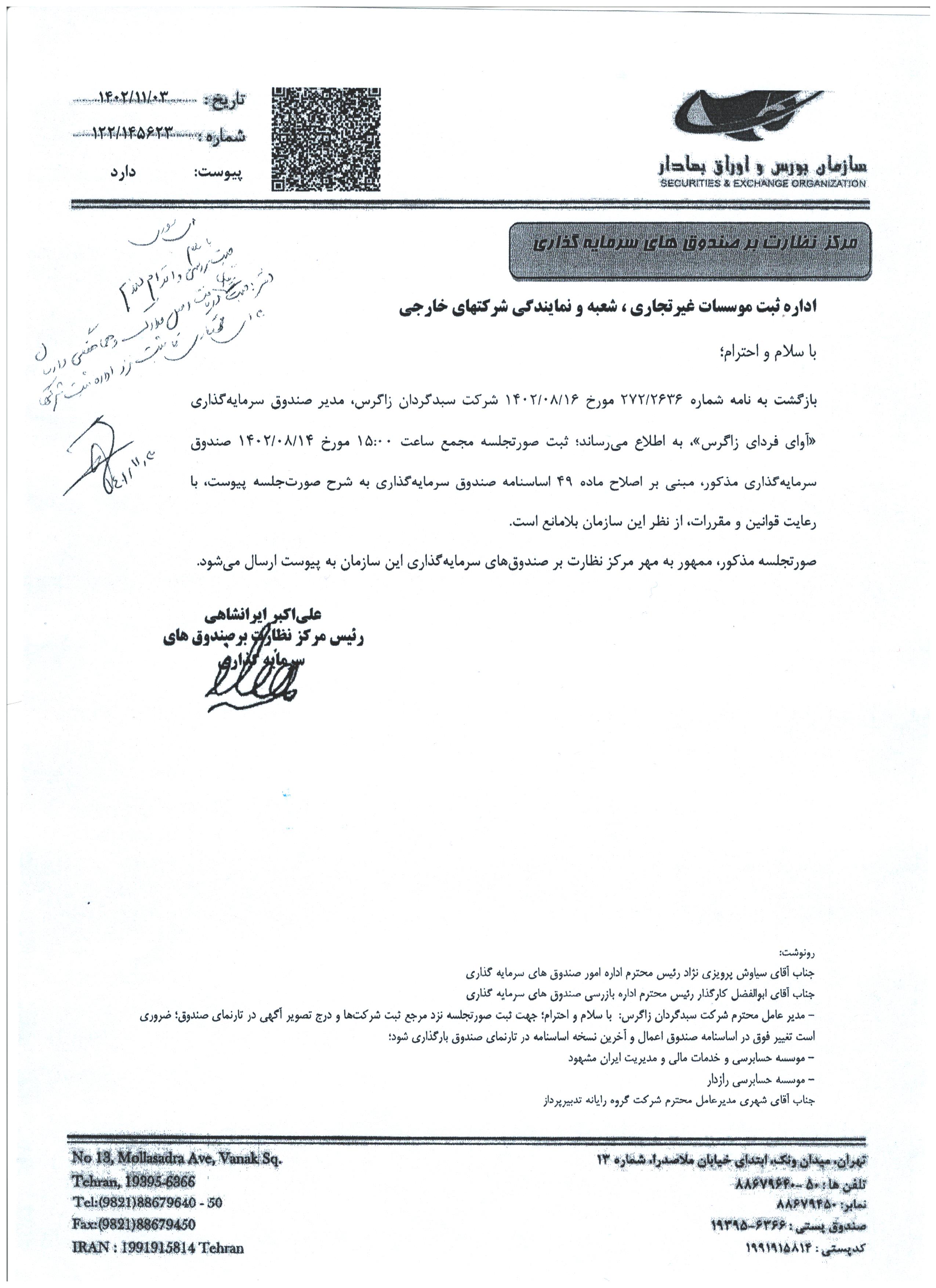 تاییدیه سازمان بورس در خصوص مجمع مورخ ۱۴۰۰/۰۵/۱۷صندوق آوای فردای زاگرس
